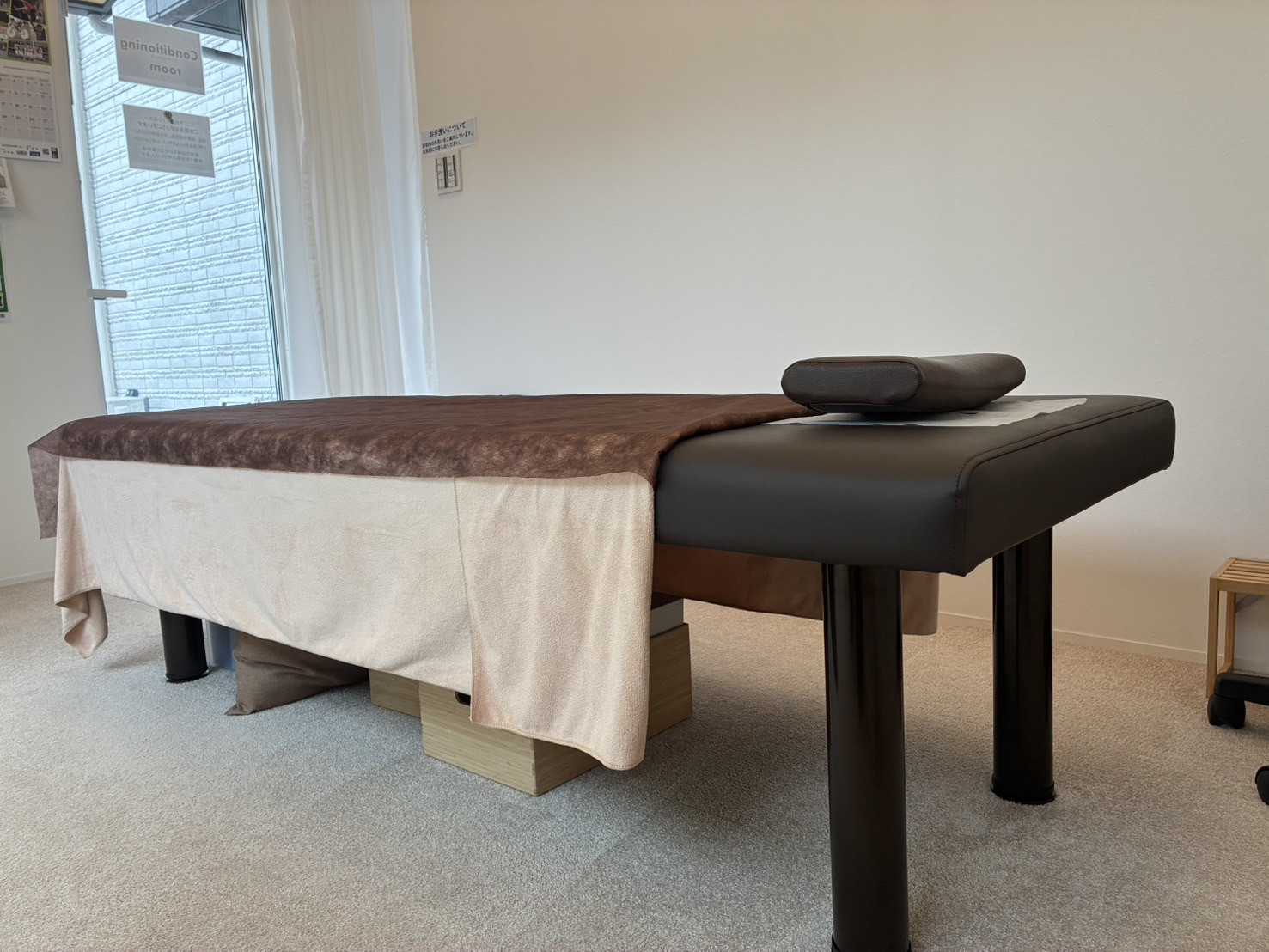 施術室について | 現在は第1施術室で行っています。予約時間より早めにいらした場合、車内でお待ちください。車でいらしていない場合は、旧施術室を待合としてご案内いたします。入り口のチャイムを押してお知らせください。 |